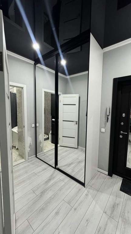 Продуманный коридор: Большая прихожая с зеркальным шкафом-купе — встречает гостей функциональностью и стилем.