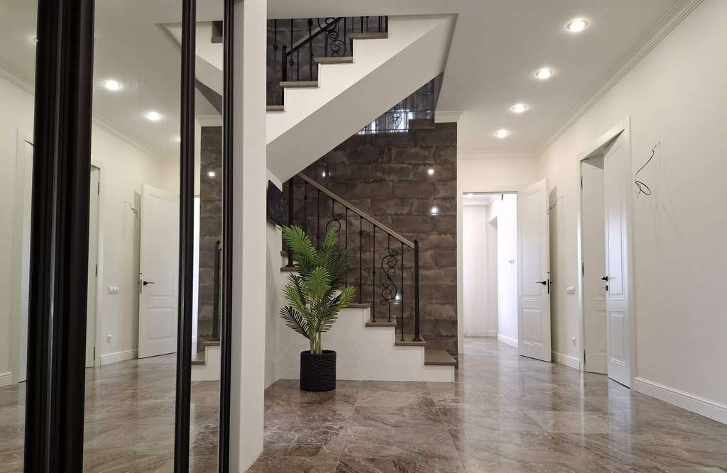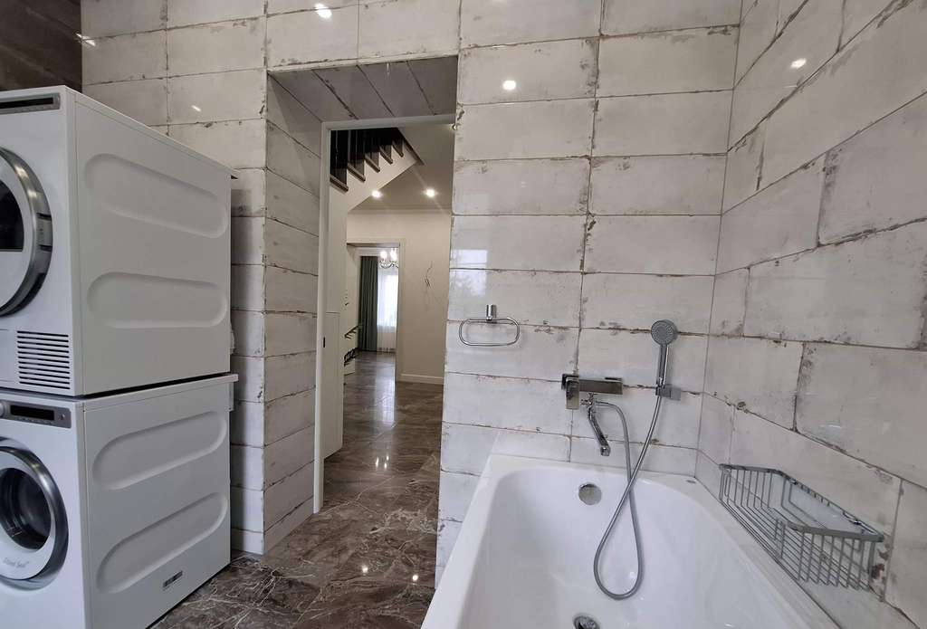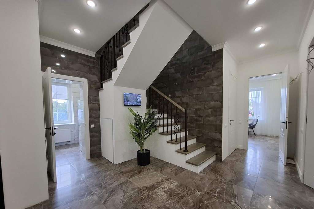 Продается загородный дом 217.6 м2 на участке 19.2 сот. Авторский проект питерского архитектора. Монолитный фундамент. 3-х метровые потолки из гипсокартона, дверные проёмы высотой 2400 на 1-м эт. и 2100 на 2-эт. Дом из финского клинкерного кирпича снаружи и газосиликата внутри. Межэтажные перекрытия бетонные с шумоизоляцией. 2018 г. постройки. Расположение: Липецк. Двухэтажный дом. В доме 5 комнат, из них 4 спальни, постирочная, 3 с/у, есть интернет, мебель, бытовая техника. Отапливаемая веранда. Подвал со стеллажами под всей площадью веранды в площадь дома не входит, вход - скрытый люк в полу.